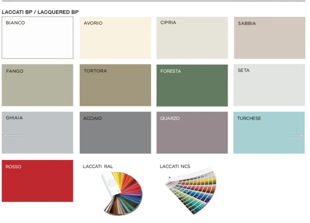 Le porte laccate sono realizzate con una soluzione di verniciatura all'acqua che riduce l'impatto ambientale in quanto priva di tossicità, nel pieno rispetto delle normative europee. Questa tecnica garantisce la brillantezza originaria della finitura nel corso del tempo.