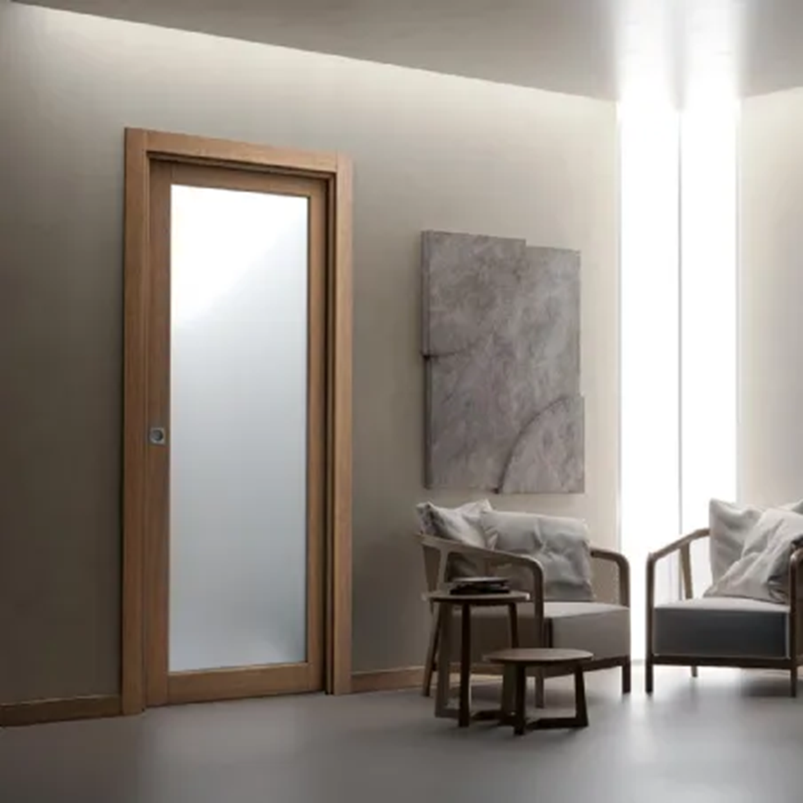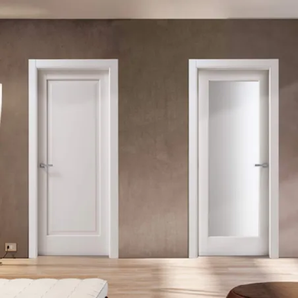 Abbinamento perfetto è quello vetro e laminato. Il cristallo che utilizziamo è un vetro di sicurezza temperato, disponibile in diverse finiture: trasparente, decorato, liscio, satinato o bianco latte. Le lastre sono inserite all’interno delle ante sotto forma di moderni tagli geometrici o con linee sinuose e arcuate, per soddisfare esigenze di stile e di trasparenza più svariate. Il nostro catalogo propone infine diversi modelli di porte di design realizzate in finitura sintetica.
