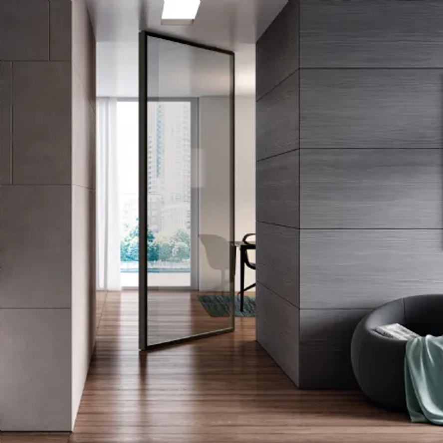 Vetro e alluminio sono I due materiali naturali ed ecologici principalmente usati per questa linea che grazie alle loro caratteristiche funzionali ed estetiche consentono separare gli ambienti mantenendoli in relazione, con soluzioni ad alto contenuto di design.
