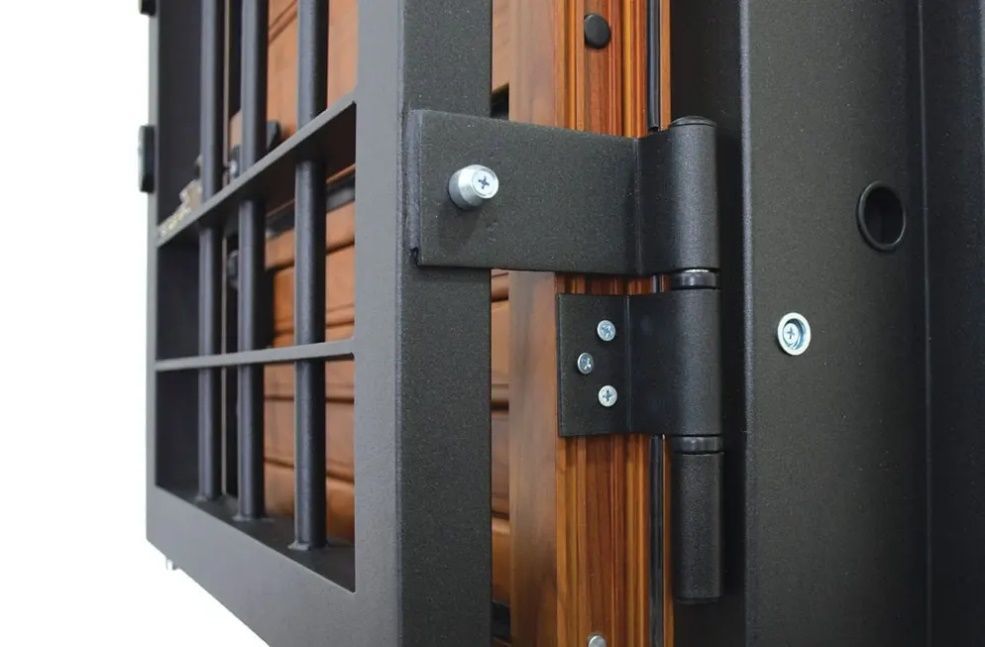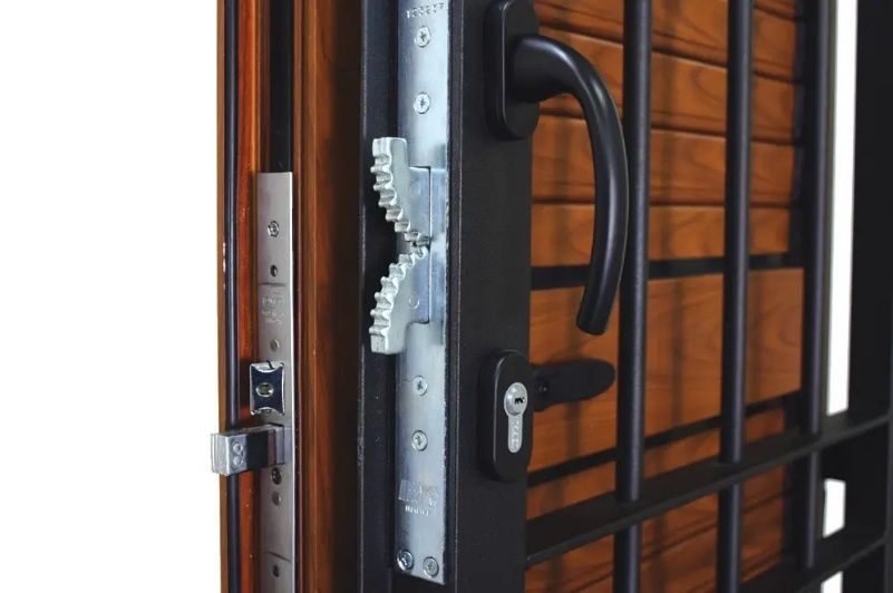 La serrature sono proposte di serie con sistema a baionetta in triplice chiusura per la grata e serratura da fascia in triplice chiusura con scivolo e mandate per la persiana, con puntali da 12 mm di diametro, sia per l’anta principale che per la secondaria che presenta paletti con leva in ottone (sia per grata che per persiana); il puntale prevede l’applicazione di un elemento in PVC che garantisce l’eliminazione dei rumori causati della vibrazione degli stessi puntali.
